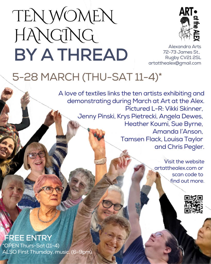 From batik and botanical printmaking to weaving and machine knitting, from embroidery and dyeing to spinning and crochet. We cover a lot of different textile techniques in our March show, some obviously traditional, some experimental and edgey. But together we share a love of creating using fabric, yarn and thread. Its a thread that links us!